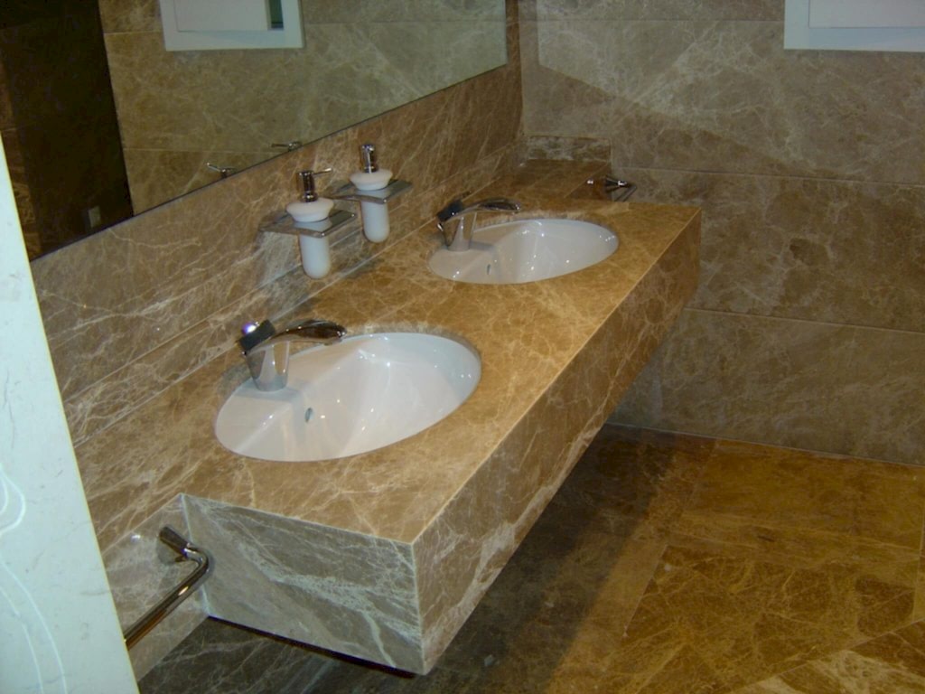 Banyo tezgahları arasında en çok tercih edilen modeller içerisinde yer alan mermer tezgahlar, görünümlerinden dolayı oldukça dikkati çeken alanlar yaratır. Cilalı veya matlaştırılmış şekilde kullanılabilen bu tezgahlar banyo ortamının getirmiş olduğu ısıya, çatlamaya ve kırılmaya karşı sağlam ve uzun ömürlü tezgahlardandır.