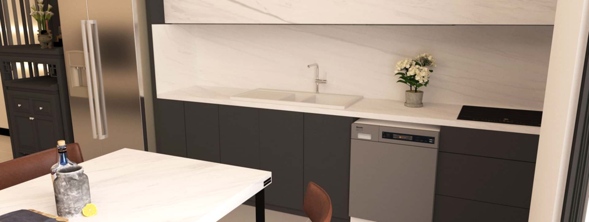 Siyah aşıklarını bu tarafa alalım! Son dönemlerin modası siyah mutfak dekorasyonunu evinize mi taşımak istiyorsunuz? O zaman tezgahlarınızda mutlaka bahsedilen bu modele yer vermelisiniz! Simsiyah bir taş üzerine oluşturulmuş beyaz kalın ve ince çizgiler aradığınız tasarımı size kolaylıkla sunacaktır.